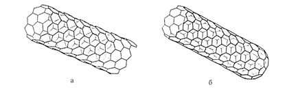 Рис. 1.8. Схема однослойной нанотрубки: а – открытой; б – закрытой с одной стороны.