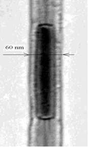 При обработке кислотами удаляются только открытые металлические частицы, а инкапсулированные внутри нанотрубок кластеры металла остаются в продуктах очистки. На рис. 3.15 представлена нанотрубка, содержащая внутри себя атомы металла.