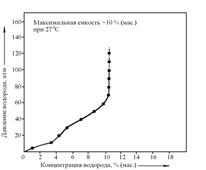 Рис. 4.7. Изотерма сорбции водорода при 300 К.