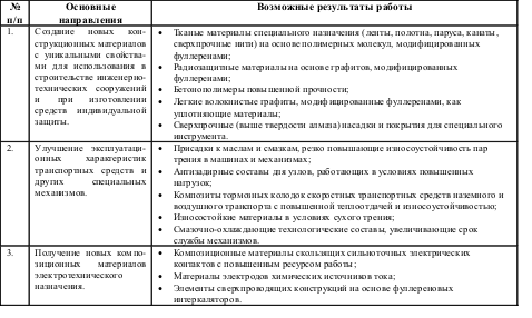 Другие возможные области применения нанотрубок вытекают из их свойств, благодаря которым они выгодно отличаются от других углеродных материалов (табл. 2).