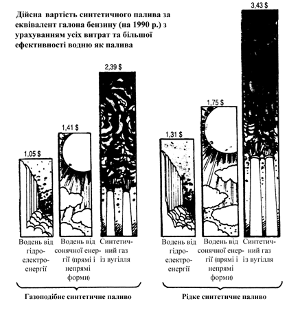 З попередніх розділів ми довідалися про те, у що обходиться суспільству синтетичне паливо. Ми також знаємо: щоб одержати дійсну вартість синтетичного або викопного палива, необхідно додати до витрат на їхнє одержання ще й розмір збитків, нанесених ними навколишньому середовищу.