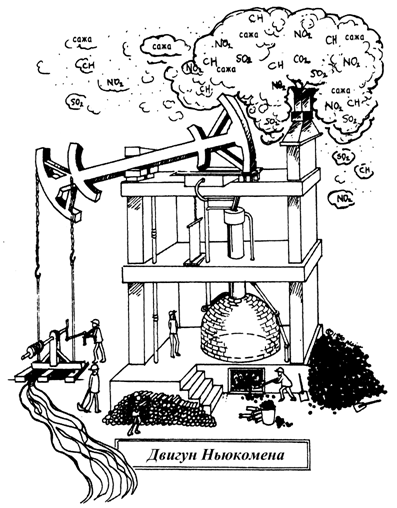 Двигун був призначений для відкачування води із шахт. Цей винахід виявився не тільки корисним для шахтарів, але і став прообразом всіх наступних парових двигунів. Але Ньюкомен не міг і уявити собі, що цей його блискучий винахід, так само як і всі наступні, буде викидати в повітря диоксид вуглецю (вуглекислий газ). Через роки, у міру того як вугілля і дрова, а пізніше нафта і газ, спалювалися, вуглекислий газ та інші хімікати потроху накопичувалися в атмосфері і врешті-решт утворили шар, який затримує тепло. Таке явище тепер відоме жителям планети під назвою “парниковий ефект”.