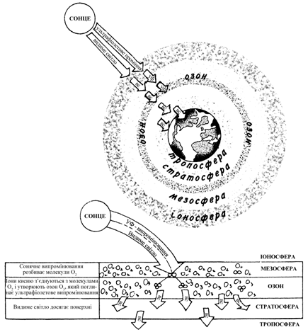 В атмосфері озон утворюється всюди, починаючи від поверхні Землі і закінчуючи висотою 40 км над нею. На рівні землі він є інгредієнтом смогу і тому не такий вже і безпечний. Але перебуваючи вище – у шарі, що називається стратосферою, – він захищає нас від руйнівних сонячних променів, поглинаючи та екрануючи ультрафіолетові промені, перш ніж ті зможуть досягти поверхні землі і викликати у нас рак шкіри.