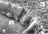 Морфология образующегося углеродного продукта (СЕМ): а, б, в - структура пленки продукта по глубине
