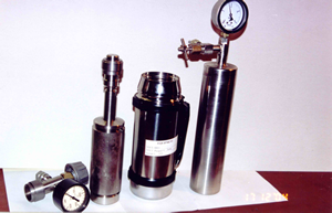 Две вольюметрические установки, предназначенные для гидрирования материалов при высоком давлении (изготовлены в Лаборатории)