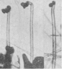 Об образовании углеродных материалов, которые сейчас принято называть нанотрубками или нановолокнами, впервые сообщили советские ученые Л.В. Радишкевич и В.М. Лукьянович в 1952 году [53]. Они разлагали CO на порошке Fe в кварцевой трубке диаметром 2 см при температуре 600 C и обнаружили, что основная часть образую¬щейся сажи состоит из частиц длиной в несколько микрон, на концах которых были видны темные частицы металла (рис. 3.7).