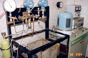 Две вольюметрические установки, предназначенные для гидрирования материалов при высоком давлении (изготовлены в Лаборатории)